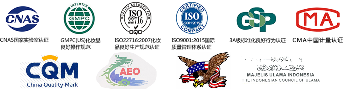 • 通過ISO22716化妝品良好生產規范認證